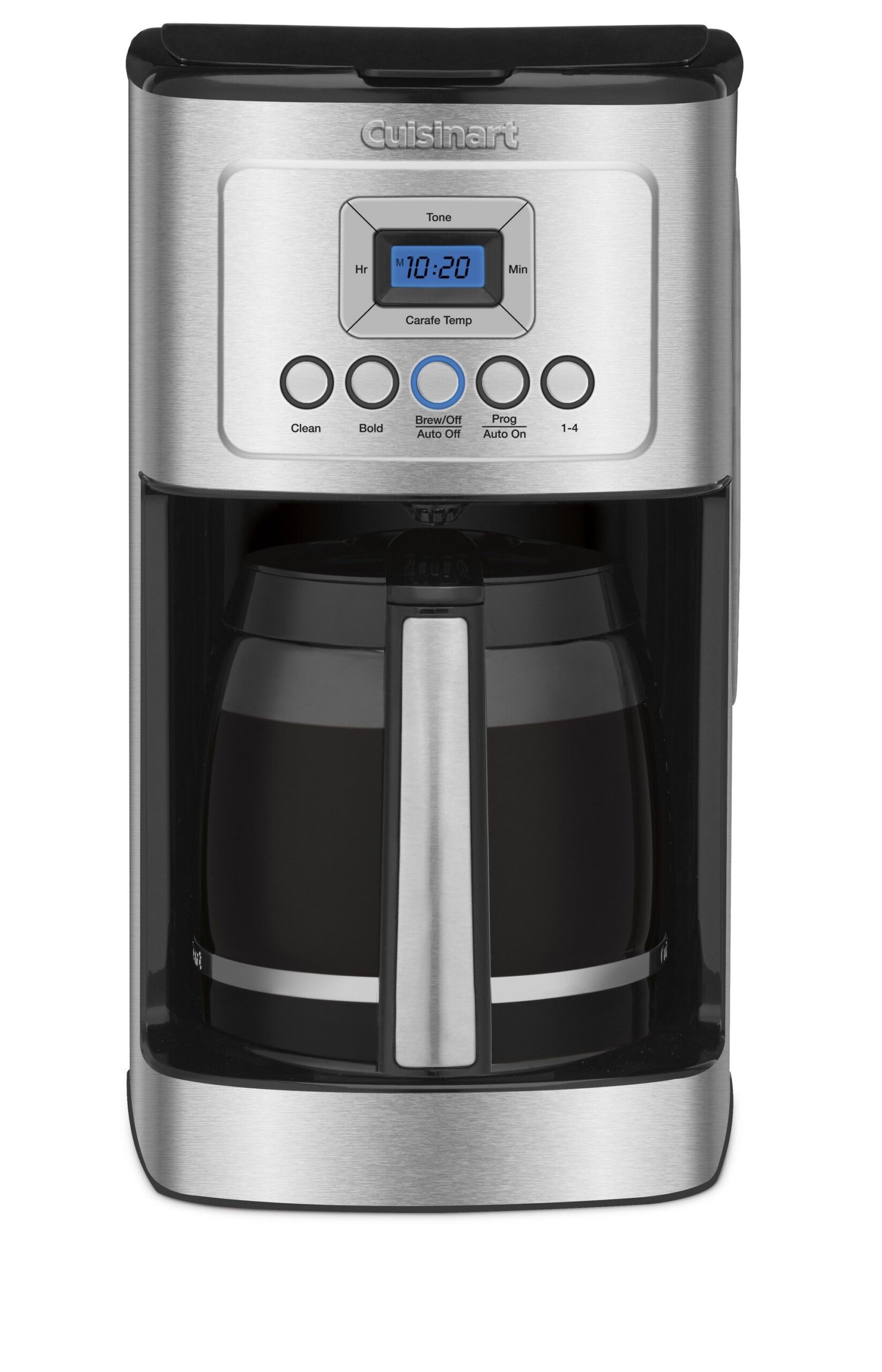 Turn up the flavor and the temperature on your coffee with the Cuisinart® 14 Cup Programmable Coffeemaker! Using our cutting edge coffee technology, the 14 Cup Programmable Coffeemaker can give you hotter coffee without sacrificing taste. Choose a regular or bold flavor profile and set the brew-time up to 24 hours ahead so your next cup is ready when you are. 11.3″ L x 8.7″ W x 14.6″ H