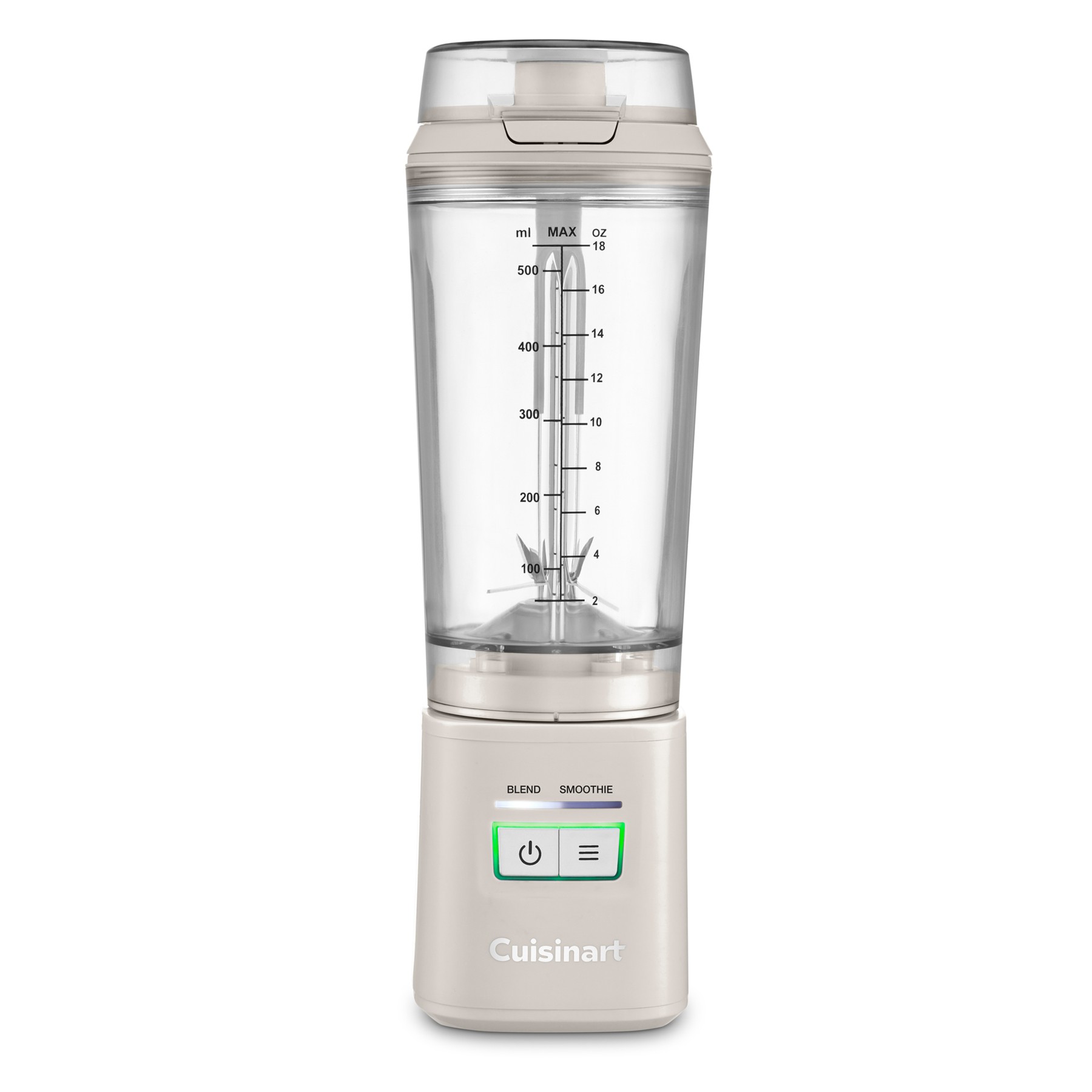Make smoothies, protein drinks, and other nutritious beverages in seconds with this innovative portable blender for active lifestyles. Ideal for blending fresh drinks at home or while traveling, it’s the mini blender that combines powerful performance with portable convenience. Designed with a snap spout lid and carrying loop, this cordless single-serve blender lets you blend up to 18 oz directly into the travel cup for beverages to go.